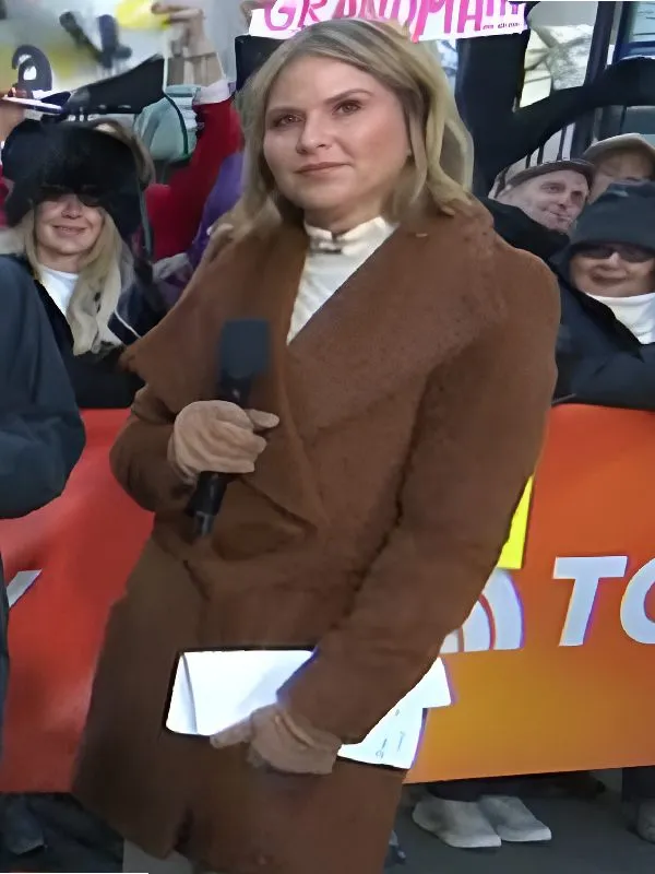 The Today Show 2025 Jenna Bush Hager Brown Wrap Coat draws inspiration from Jenna Bush Hager’s sophisticated on-screen persona and her timeless fashion sensibility. Featured during a segment on The Today Show, this embodies a seamless blend of effortless sophistication and contemporary elegance. It enhances any outfit with its graceful wrap design and warm brown hue, which radiates understated luxury. Tailored for the fashion-conscious individual, the coat combines visual allure with comfort, establishing itself as a must-have for the season. Its elegant drape and cozy texture make a bold statement, empowering the wearer to embrace a trendsetting position while remaining comfortably enveloped in classic style.