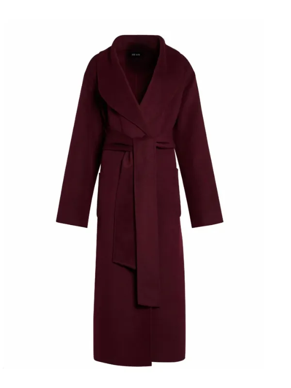 During the winter, the Burgundy Long Wrap Coat’s premium wool fabric provides warmth and durability. The soft viscose lining inside makes it easy to layer over other clothes and adds comfort. In addition to providing a snug fit, the front knot closure creates a lovely wrap appearance. Its shawl collar complements the overall style, giving a sophisticated yet carefree look. Freedom of movement and a clean finish are provided by long sleeves with open hem cuffs. It is appropriate for both daytime and evening wear due to the rich burgundy color’s depth and elegance. This coat has one inside pocket to secure small items and two outside pockets for convenience.