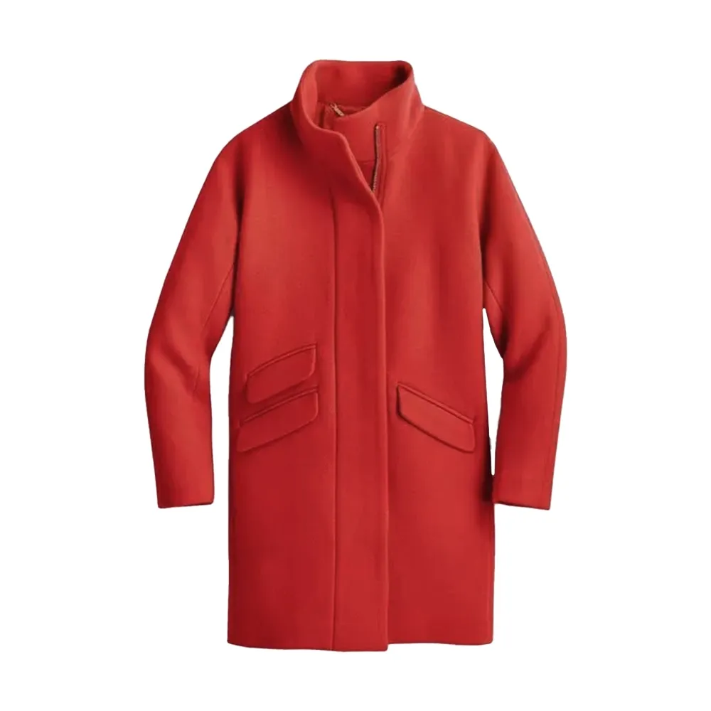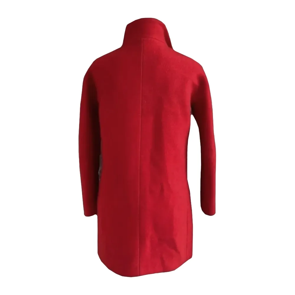 This outerwear is made the usage of wool, providing each warm temperature and lasting use. The inside has a soft lining that adds to consolation whilst being worn throughout the day. A the front zip continues it comfy and smooth to manage in changing climate. Its upright collar adds a smooth line to the neckline, giving it a tidy and easy appearance. The bold color lifts the piece, making it suitable for many clothes and beneficial in cooler seasons. Its smooth surface and sharp end make it appropriate for every day wear or journey. With a balance between shape and use, the coat serves nicely in both informal and semi-formal moments.