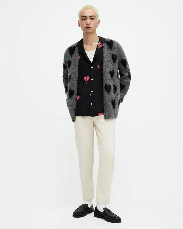 The Traitors US S03 Grey & Black Heart Print Cardigan The Traitors US S03 Grey & Black Heart Print Cardigan