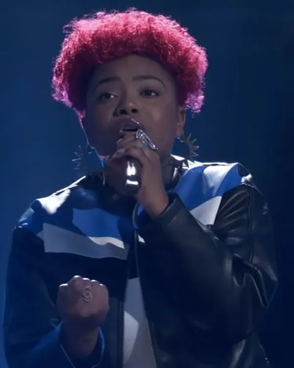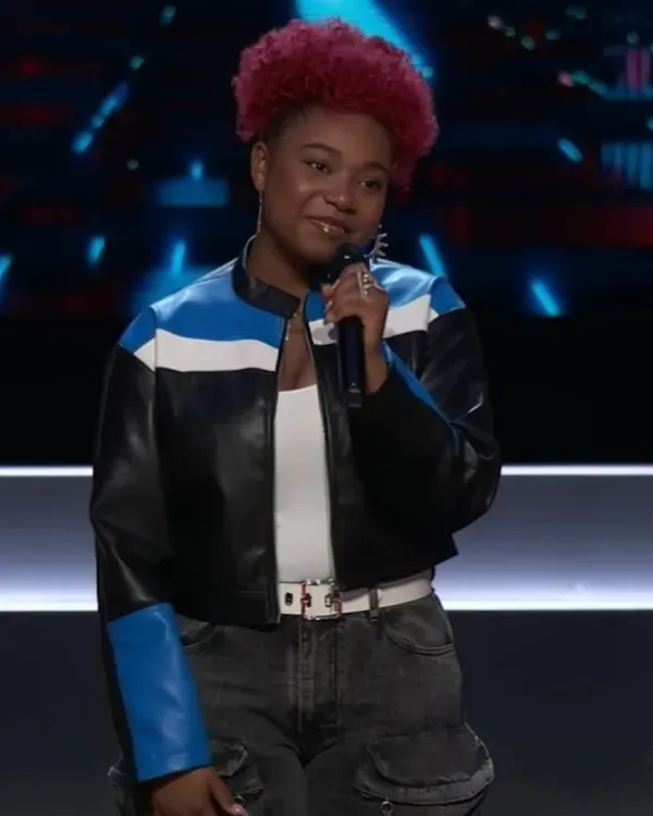 The Voice Season 27 Alanna Lynise Leather Black And Blue Stripe Jacket
