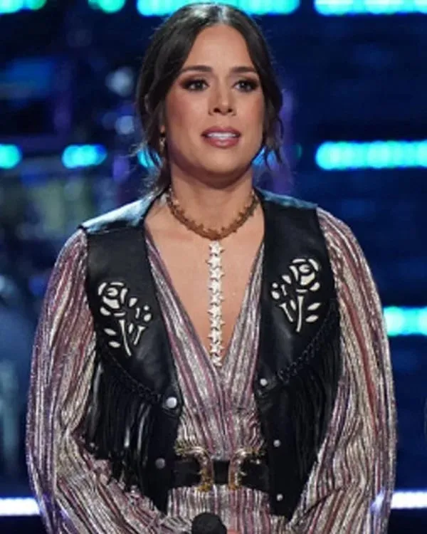 The Voice Season 27 Paige Mackenzie White Rose Black Leather Vest