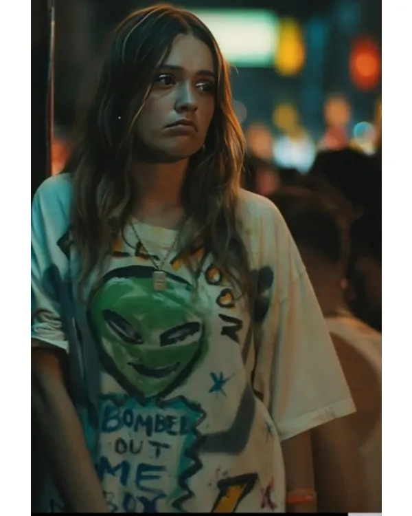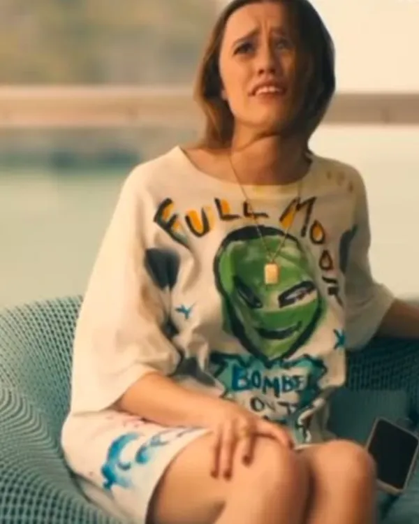The White Lotus S03 Aimee Lou White Printed Shirt is a ambitious and creative addition to any cloth cabinet, imparting a fun twist on informal style. This shirt functions a placing alien graphic print that right away attracts interest, adding an element of personality and aptitude to your appearance. The easy white color enhances the design, making it easy to pair with jeans, shorts, or leggings for a comfy, modern outfit. Perfect for folks that enjoy specific and modern-day apparel, this blouse results easily combines fashion with consolation, offering a versatile piece that works for a variety of activities.