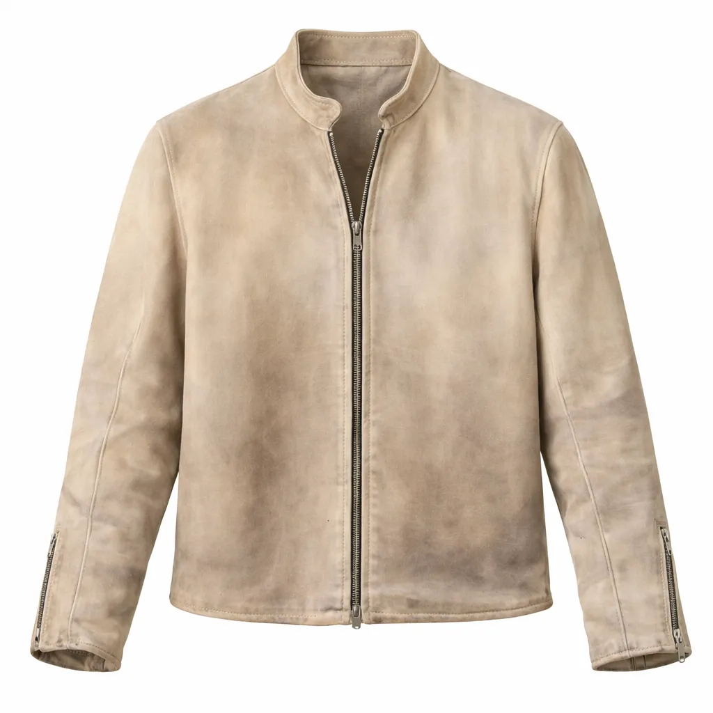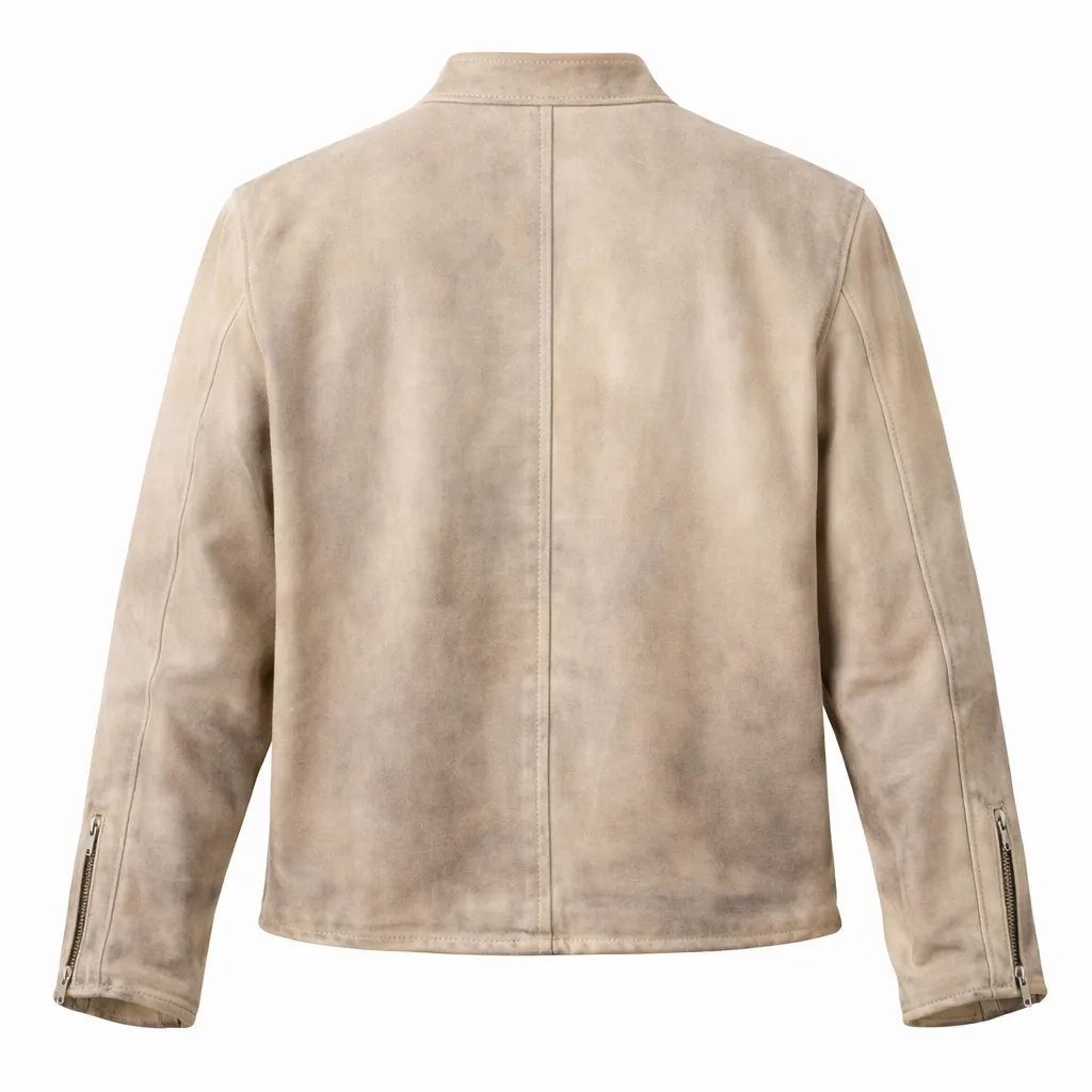 This jacket is made of premium real or faux leather and is meant to last a long time. The erect-style collar adds a bold and structured touch, and the smooth inner finish guarantees comfort all day. The jacket has a sleek appearance thanks to the front zipper closure, which makes it easy to wear and secure. Full-length sleeves with zipper cuffs add a contemporary and edgy vibe while also improving style and functionality. Beige’s adaptability makes it simple to wear with casual pants, boots, or jeans. This jacket is perfect for people searching for a chic outerwear item that seamlessly blends strength, comfort, and classic style appeal.