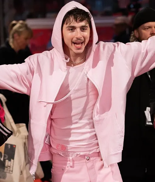 Timothee Chalamet Berlin Film Festival Pink Hoodie provides maximum charming appeal while prioritizing comfy wear. It is so effortless and stylish, paired with comfy casual fleece fabric trousers it looks great whilst providing warmth and comfort perfect for the winter season. The zip hooded collar comes with adjustable drawstrings and the zippers allow for convenience. Rib knitted cuffs are durable to the design while also keeping the sleeves in place, further representing the brand’s enthusiasm towards detail. Bright pink and teddy fleece material is ideal for relaxing at home or ideal casual outings. Effortless Chalamet always inspires people, and this is perfect for those who would like to maintain comfort in style.
