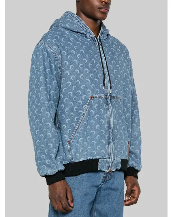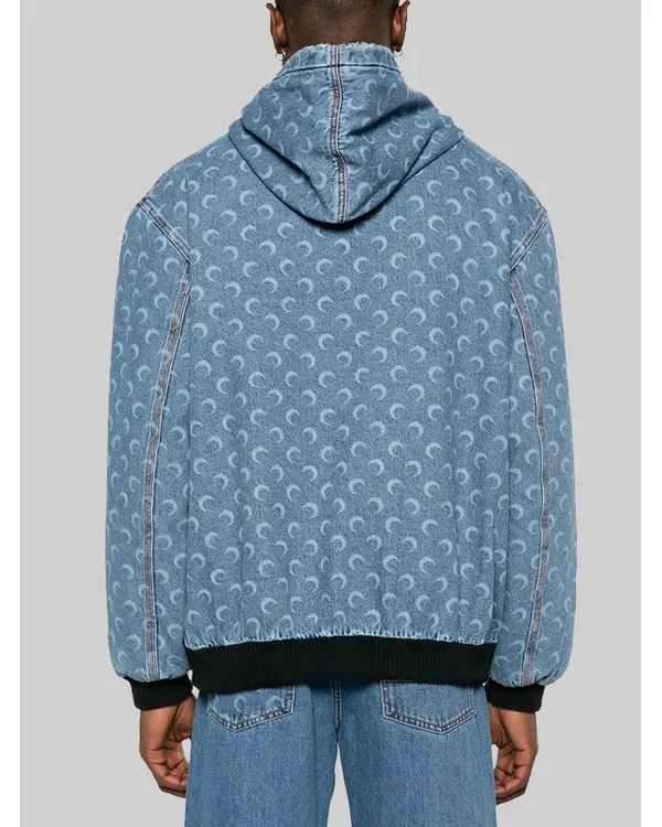 Timothee Chalamet Crescent Moon-Print Blue Hooded Denim Jacket