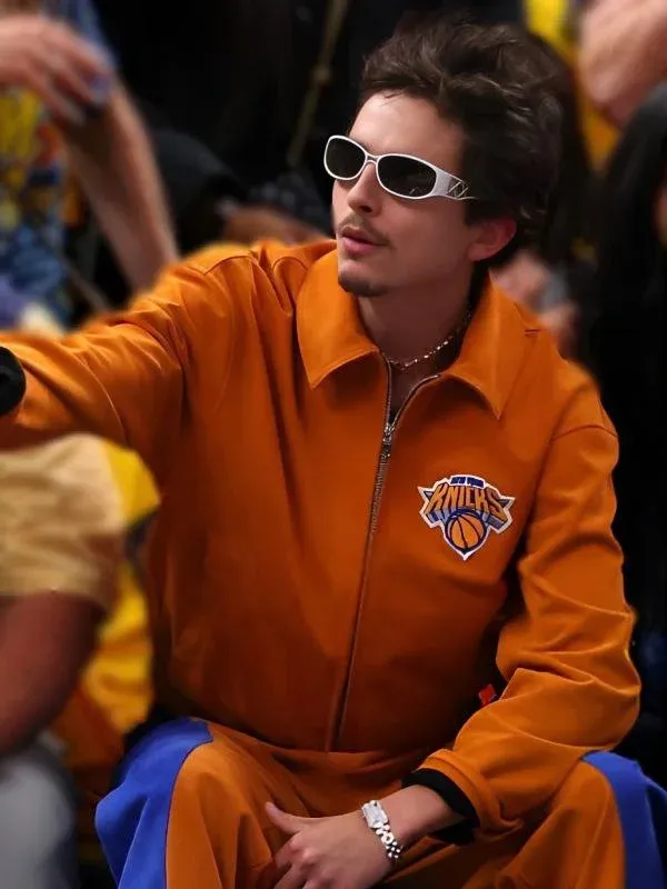 Timothee Chalamet Knicks Game Six Orange Jacket