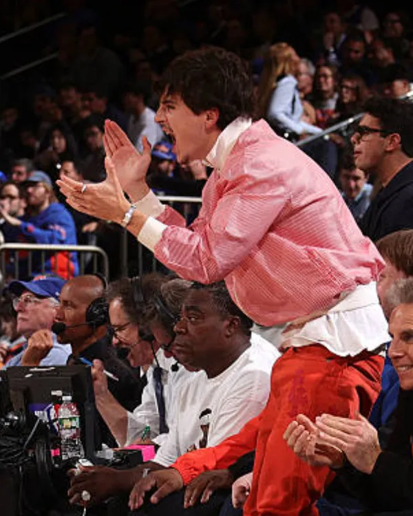 Timothee Chalamet MSG NYC Track Jacket is crafted from cotton material, which makes it lightweight and comfortable to wear. More warmth and comfort are provided by the soft viscose lining on the inside. The jacket is clean to wear thanks to its zip closure at the front. The long sleeves and knitted cuffs keep you comfortable and fashionable, while the stand-up fashion collar adds a contemporary touch. It is simple to style with jeans, trousers, or even a casual ensemble and adds a humorous touch. This jacket will make you stand out with confidence and charm, whether you’re going out with friends or just want to update your road style.