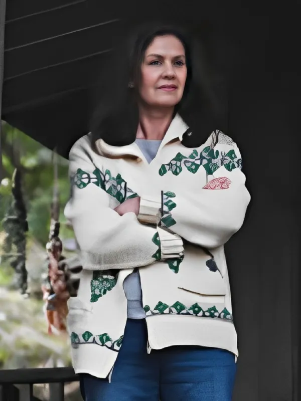 Tracker S02 Wendy Crawford Fish Graphic Sweater unique and eye-catching sweater perfectly complements Wendy’s bold yet down to earth character on the show. Blending practical comfort with playful style, it’s the kind of statement piece that works both on and off screen. Whether you’re a fan of the series or just love quirky, fashion-forward pieces, this sweater is a must-have addition to your fall and winter wardrobe.