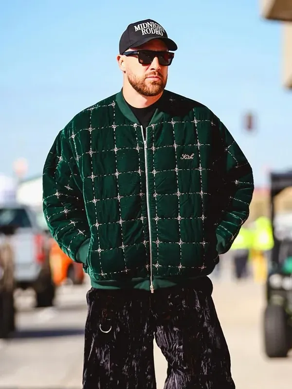 The Travis Kelce Velvet Jacket is a statement piece that mixes consolation and style, ideal for enthusiasts and fashion lovers alike. Made from premium velvet, this attire radiates sophistication even as making sure warm temperature and durability. Its darkish inexperienced hue adds a bold and dynamic edge to your cloth cabinet, making it best for each casual outings and lively recreation-day celebrations. The indoors is covered with smooth viscose, supplying a high-priced experience against the pores and skin and ensuring you live at ease all through the day. The the front zipper closure not best gives convenience but additionally enhances the outerwear’s cutting-edge and sporty layout. Ribbed cuffs and a hemline upload a cushy healthy, while the tailor-made finish showcases attention to detail, handing over a elegant look.