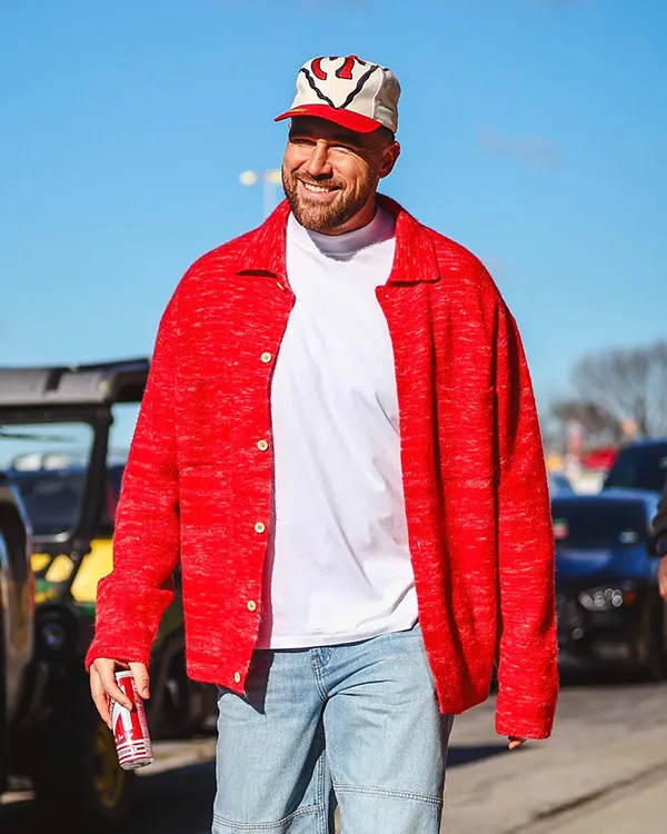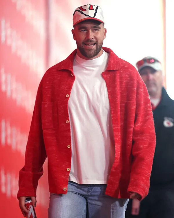 Chiefs vs Broncos Game Travis Kelce Red Cardigan