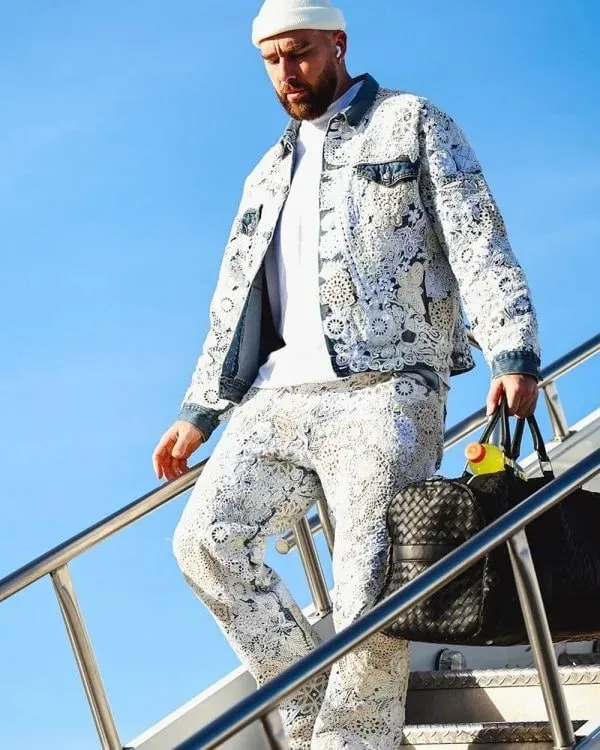 Travis Michael Kelce, born on October five, 1989, in Westlake, Ohio, is an American professional football tight quit for the Kansas City Chiefs inside the National Football League (NFL). Kelce joined Cleveland Heights High School in Cleveland Heights, Ohio, wherein he excelled in soccer, basketball, and baseball, serving as a three-year letter-prevailing quarterback for the Tigers. He went on to play university soccer for the University of Cincinnati Bearcats earlier than being decided on inside the third spherical of the 2013 NFL Draft by way of the Chiefs. Kelce has contributed to the Chiefs’ fulfillment, supporting the group secure Super Bowls LIV, LVII, and LVIII victories. Sebastian appears fashionable on this Travis Kelce Poetic Lust Jacket. Hey every body! Snag the identical elegant Poetic Lust jacket that Travis rocked at a current occasion. Don’t wait too long—area your order now earlier than it’s offered out!