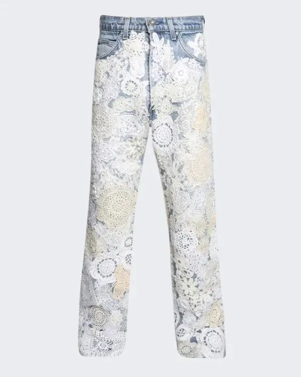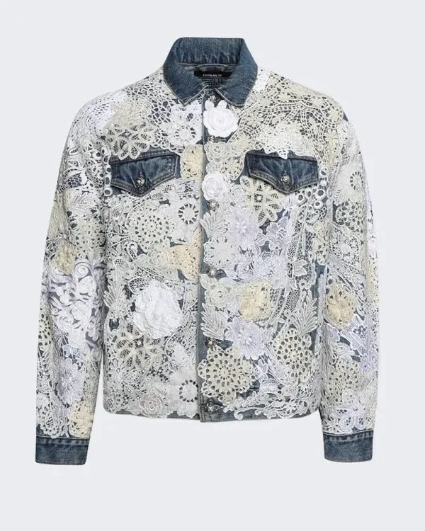 This precise men’s jacket is crafted from superb denim fabric. It is fantastically designed with a blouse-style collar, lengthy sleeves with buttoned cuffs, two buttoned flap patch pockets at the chest, slit waist wallet outside, and a front beginning with a buttoned closure. This guys’s stunning denim jacket is available in blue, protected with hand-crafted crochet doilies and laces.