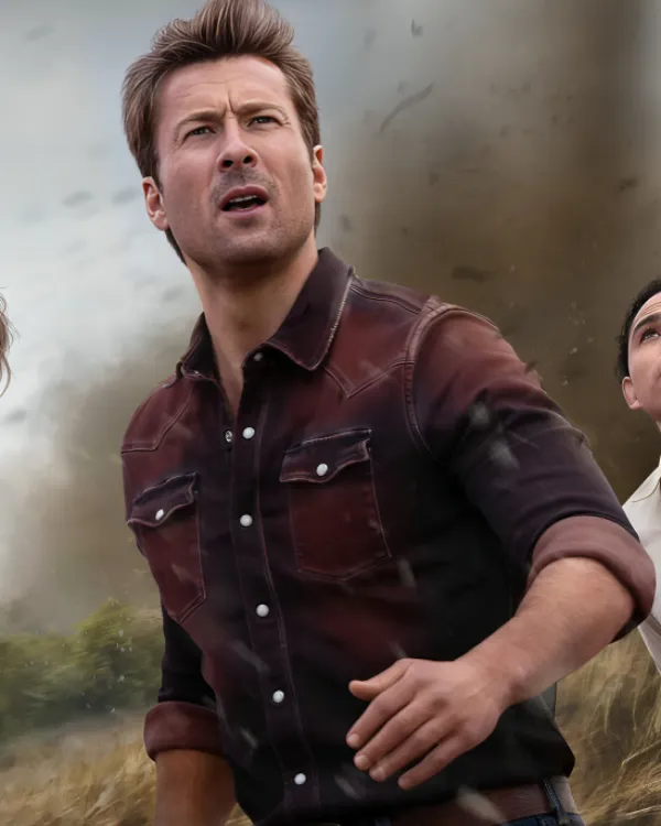 Glen Powell Twisters 2024 Brown Denim Shirt Tyler Owens Denim Shirt