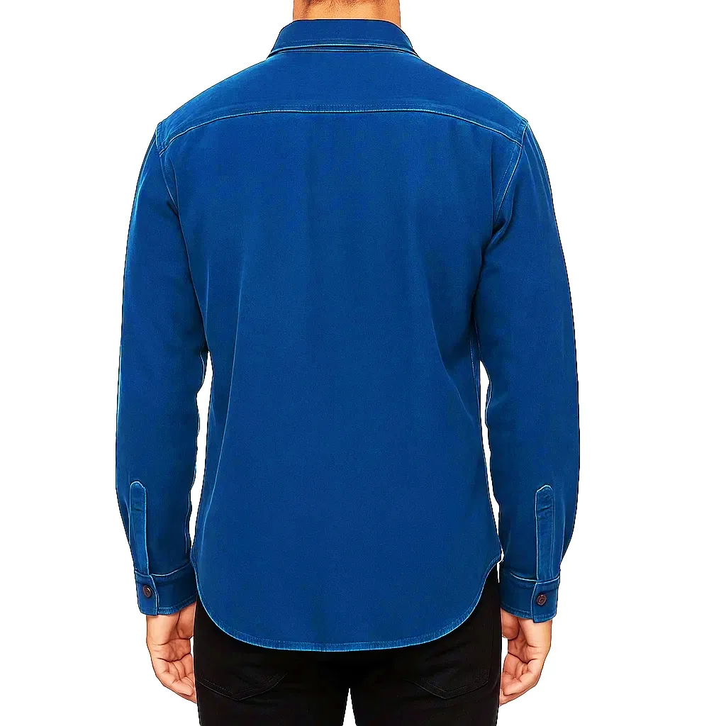 Made from denim, the jacket has a durable yet breathable shell that is perfect for daily use. It is appropriate for prolonged use throughout the seasons because of its soft viscose lining on the inside, which guarantees a comfortable fit. The vivid shade of blue is ideal for layering over a more formal outfit or for making a dramatic statement without being overbearing. With four roomy exterior pockets and one interior pocket, this functional design combines form and function to provide ample space for carrying your necessities without sacrificing flair. It has a timeless silhouette that goes well with jeans or chinos thanks to its full-length sleeves, shirt-style collar, and buttoned cuffs. In addition to offering a snug fit, a front button closing enhances the jacket’s historical appearance.