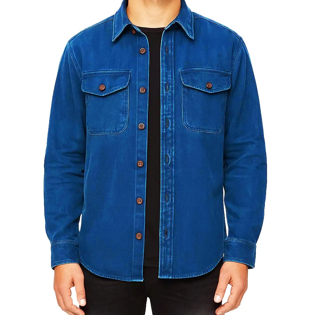 This denim jacket is fantastic! The material feels sturdy yet comfortable, and the blue color is vibrant. The buttoned closure and shirt-style collar give it a classic look. Very pleased with the quality.