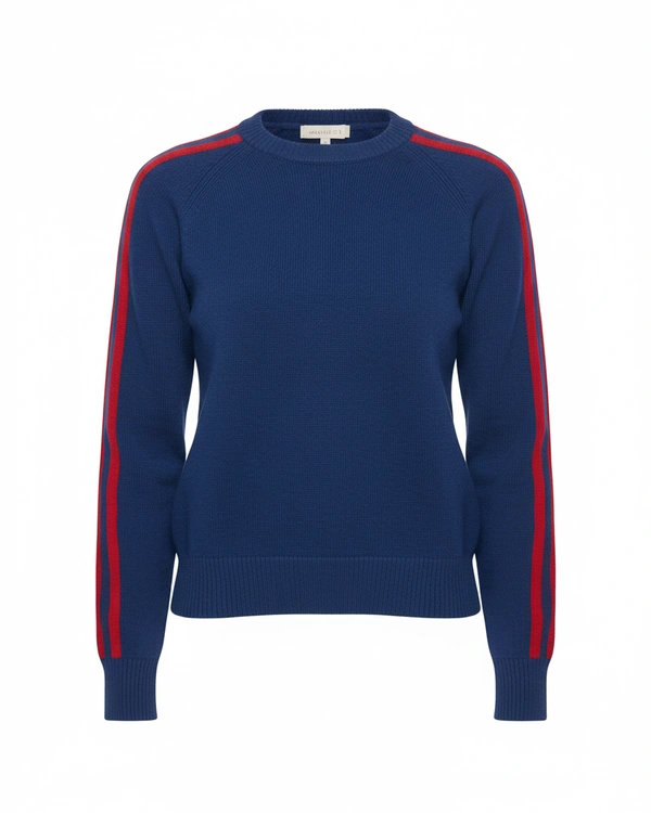 The knit fabric feels incredibly soft, and the blue and red stripes give it a bold yet stylish look. Perfect for casual outings and layering during colder weather.