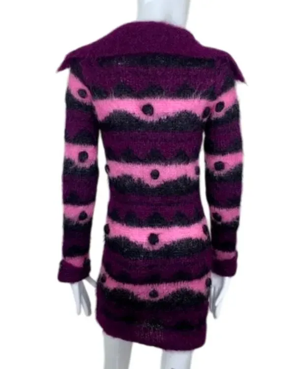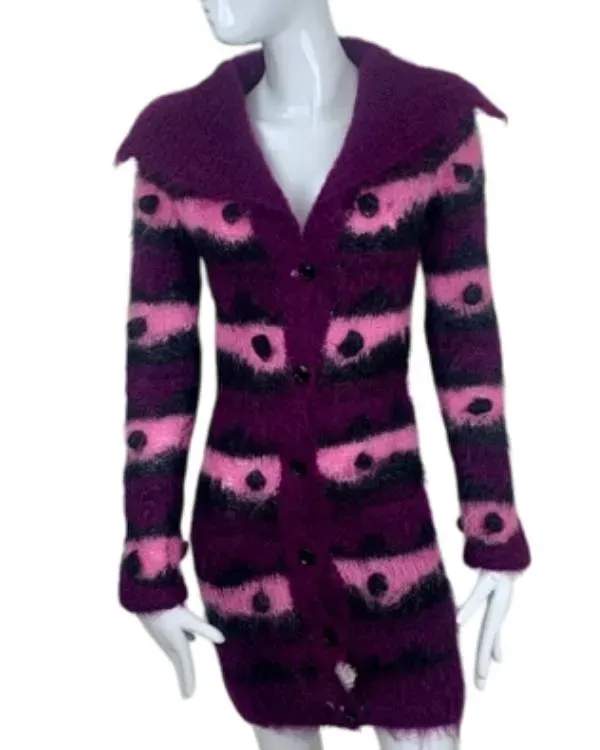 The Wednesday Enid Sinclair Fur Jacket is made of soft, luxurious fur on the outside and has a warm viscose lining inside. The jacket’s wide collar and classic button fastening make it both stylish and safe. The long sleeves with exposed hem cuffs add a relaxed, modern feel. The jacket’s eye-catching purple and pink striped design makes it a bold statement piece. This fashionable and warm jacket is perfect for cold days when you want to stand out. Whether you are dressing up or simply want a different look that is inspired by Wednesday, this fur jacket adds bright joy and cozy comfort to your everyday look.
