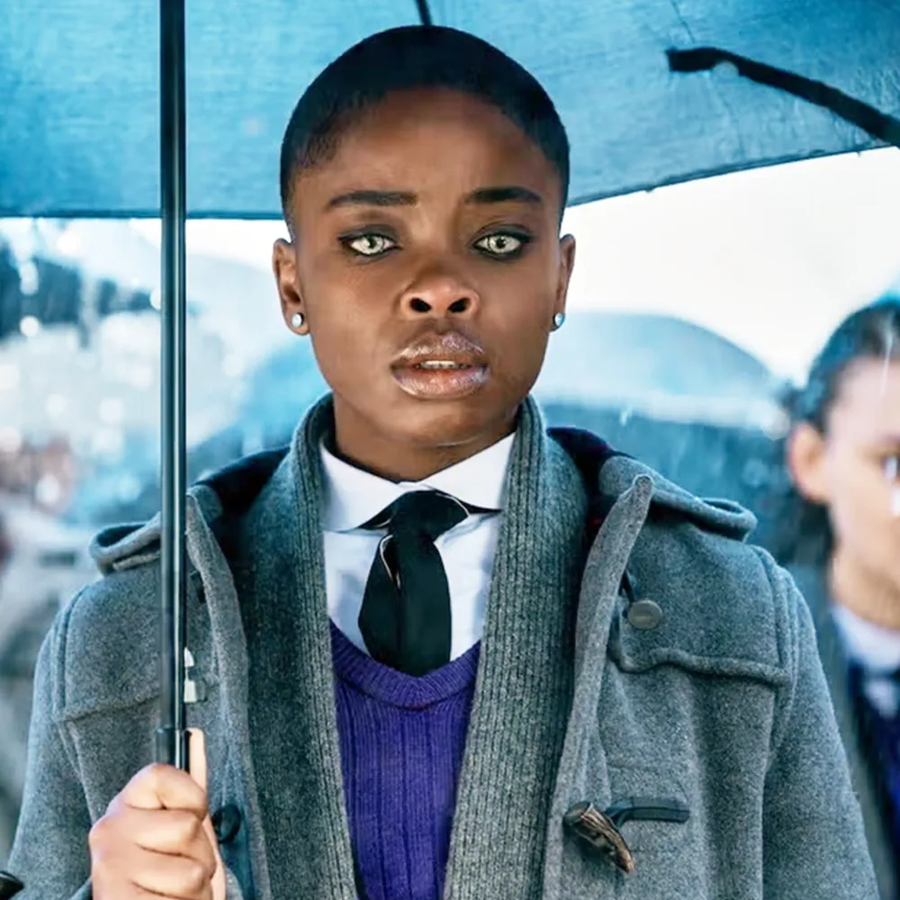 Wednesday S02 Joy Sunday Bianca Barclay Gray Duffle Coat