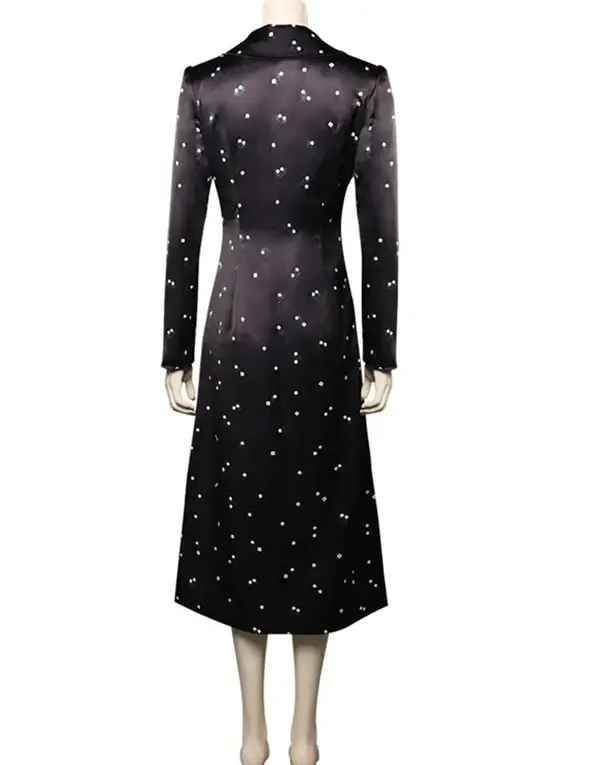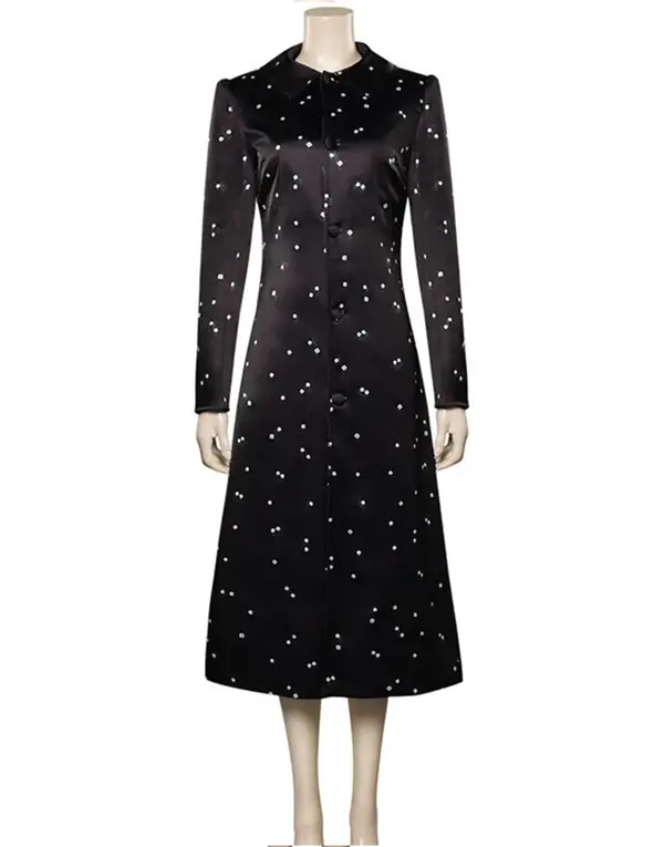 This floral satin coat perfectly captures Wednesday Addams’ iconic style.