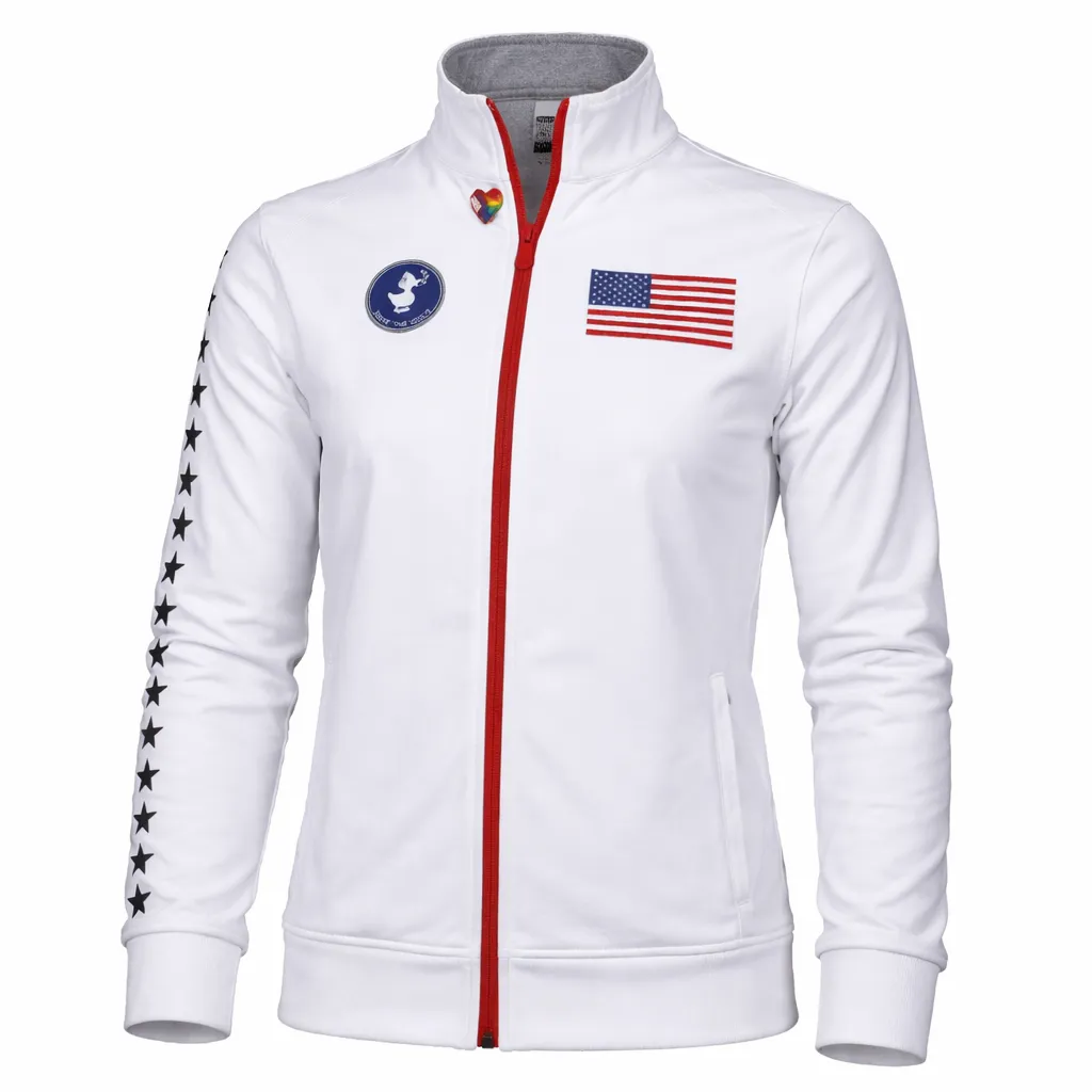 I was searching for a unique gift for a fellow Team USA fan and this skating jacket surpassed every single one of my high expectations for quality. Even though I was worried the cotton wouldn’t be warm enough, the weight of the material is substantial and the white color is brilliant without looking bleached.