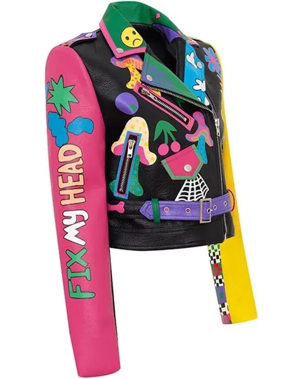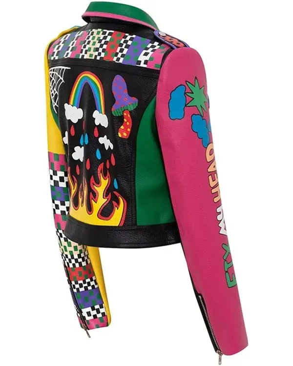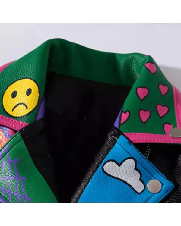 This Womens Graffiti Printed Cropped Bikers Jacket is crafted from wonderful real leather-based with a gentle viscose cloth lining inside. It is fantastically designed with a notched lapel collar, long sleeves with zippered cuffs, buttoned flap patch wallet at the chest, two waist wallet outside, pockets inner, and a the front establishing with an asymmetrical zippered closure. This cute girls authentic leather-based jacket is available in black with multicolored graffiti revealed.