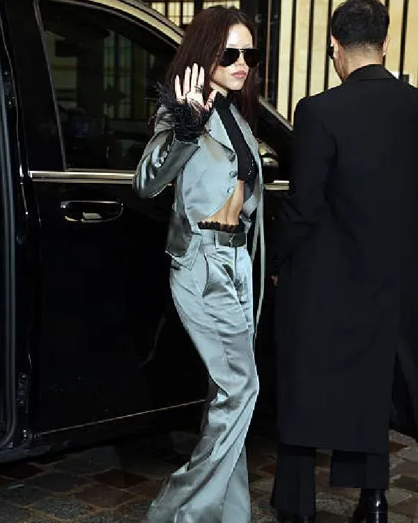 Most recently, at the Paris Spring/Summer 2026 shows, actress Jenna Ortega, who established herself as a modern gothic icon with Wednesday, continued to push the boundaries of fashion. This season, Ortega, who usually chooses ensembles that blend subversive tailoring with dark romantic style, made a statement by sitting in the front row at the Ann Demeulemeester show. She demonstrated her ability to add a contemporary, edgy twist to classic silhouettes with her ensemble, Womenswear Spring Summer 2026 Jenna Ortega Crop Blazer. Accessorized with a sheer black crop top and flared pants, this striking silvery-gray ensemble cemented her reputation as a fashion risk-taker with a fiercely distinctive and influential style.