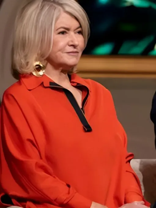In Season 1 of Yes Chef, Martha Stewart plays a confident, sophisticated, and always in control character. Her style reflects her strong personality and sophisticated taste. One of her most unusual ensembles is the Martha Stewart Orange Top with black trim. Her bold and sophisticated look is perfectly captured by this top, which blends vibrant color with crisp details. Whether Martha is teaching cooking or handling difficult situations, her clothes show off her sense of style and professionalism, making her a memorable figure.