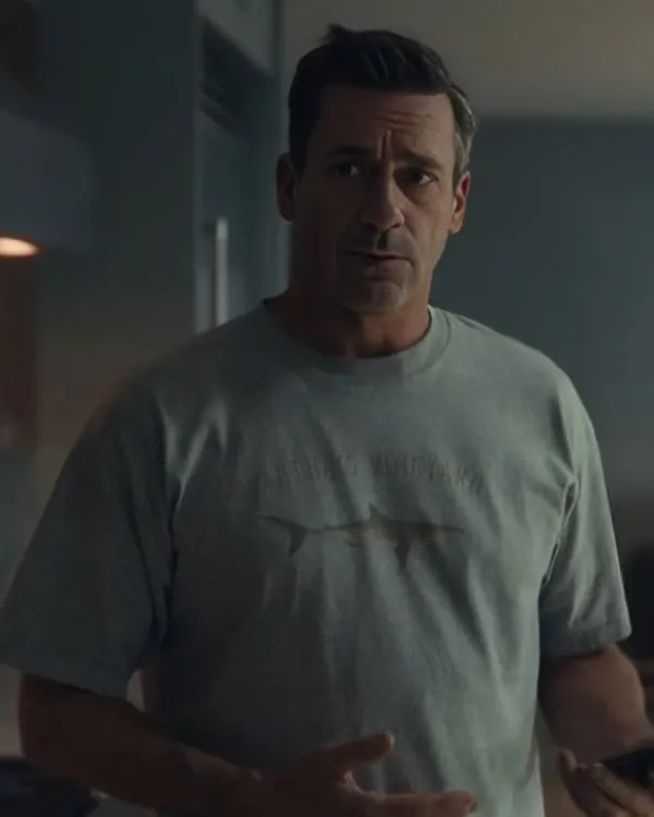 Your Friends and Neighbors Jon Hamm Shark T-Shirt uses fleece cloth, selected for its tender feel and mild warmth. The the front has a smooth pullover layout, supporting the healthy stay easy and clean without introduced parts. The neck follows a spherical form, keeping the collar close without being too company. Its sleeves attain midway, making the piece appropriate for slight days or indoor put on. The tone remains in grey, presenting stability with different layers or on its very own. It helps motion and ease even as maintaining a quiet shape. Its floor holds a picture print in a light form, adding just enough detail without drawing too much cognizance. The entire construct works nicely in regular scenes, from brief outings to time at home, with enough comfort to stay on through longer hours.